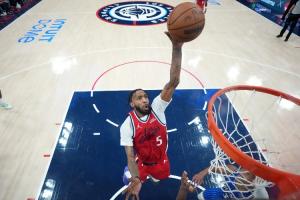 上半场小德里克·琼斯出战15分钟5投5中,罚球2中2砍下12分3篮板1助攻1抢断,正负值+12全队最高。